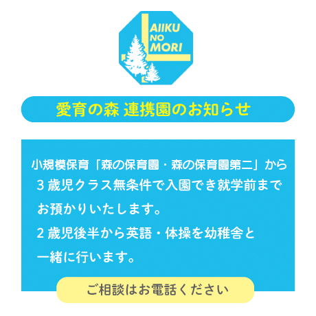 現在、森の幼稚舎、森の保育園、森の保育園第2と3園を運営しています。